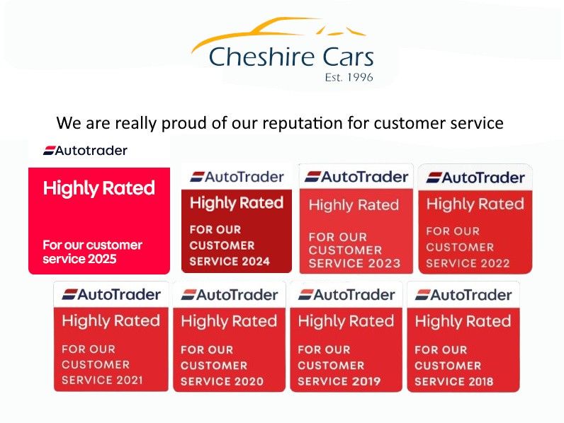 Cheshire cars established during 1996 all our reviews are available through Google Facebook and Auto trader we are in the less than 1% of dealers to have been awarded each consecutive year the Auto trader Highly Rated Award which is voted for by your clients we rightly so put a high priority on customer experience so all our vehicles come as standard highly detailed and workshop inspected