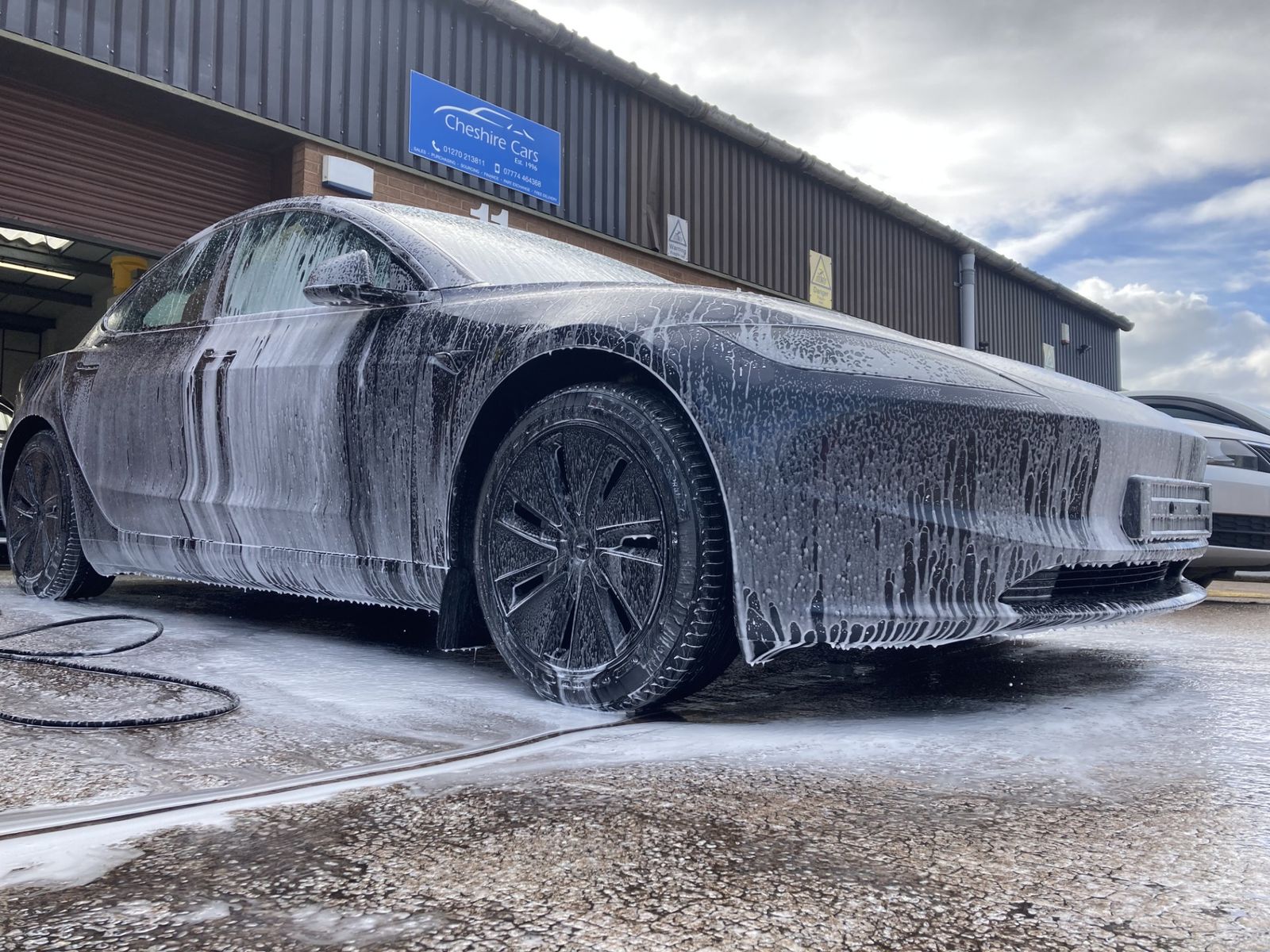 The car benefits from Tesla new vehicle warranty until 05 2028 with the remaining battery warranty until 05 2032 the Stealth Grey was a £1300 option at time of ordering the car also available is a three pin charge cable optional now but this car has one as well has having a fast charge cable